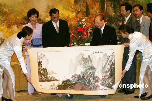 会见中,汪会长向连战主席赠送了北京一位九十多岁的名画家秦云岭所画的《江山如画》及一九八三年与一九九六年在大陆出版的连老先生两本著作;连主席转交了辜振甫夫人的一封信给汪会长,并向他赠送了辜先生年青时代居住阳明山俯瞰纱帽山所创作的一幅油画的复制品、台湾琉璃名家王侠军作品《宏图》以及祖父连横先生名作《台湾通史》与他个人著作《改变,才有希望》。