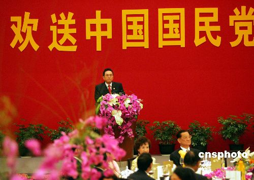 五月二日晚,欢送中国国民党大陆访问团宴会在上海举行。中台办主任陈云林说,国民党大陆访问团八天揭开两党关系新篇章。作者:潘索菲