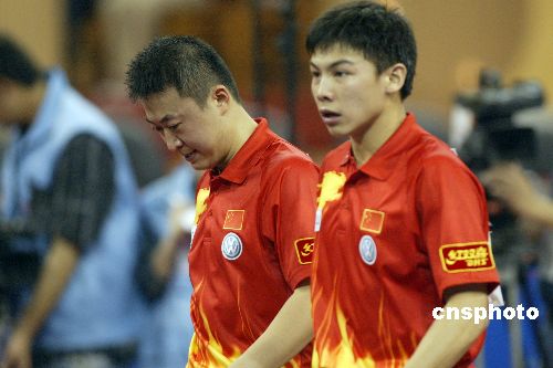 图:奥运会冠军马琳、陈玘失利世乒赛男双半决赛