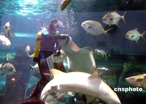 2005年5月6日,秦皇岛新澳海底世界成为今年秦皇岛“五一”黄金周海洋旅游线路的一处亮点,每天下午的喂鲨鱼表演,吸引了来自东北、唐山、天津、北京等地游客的目光。作者:李佳明