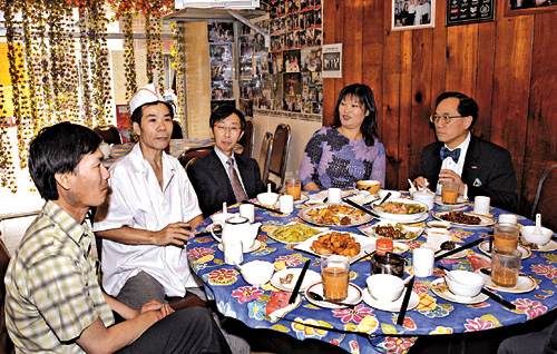 曾荫权与学员交谈后,随即前往粉岭联和墟的一所咖啡室,与正在享受下午茶的市民闲谈。曾荫权说:“我十分享受在这种轻松的气氛下与‘街坊’闲话家常,对我掌握民生和民情好有帮助。他们的意见对我和特区政府的同事们施政甚具启发性及有用。”