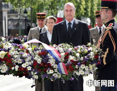 中新网5月8日电 据国际在线报道,法国8日在首都巴黎的凯旋门举行仪式,纪念第二次世界大战欧洲战场胜利60周年。