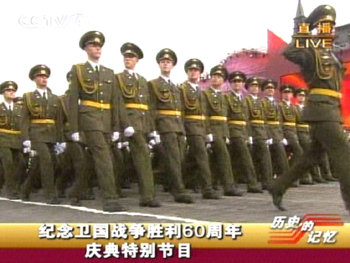 5月9日,俄罗斯在莫斯科红场举行纪念卫国战争胜利60周年庆典。(央视截图)