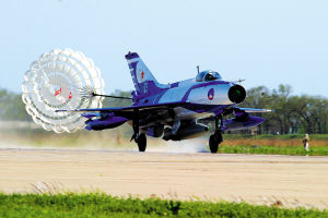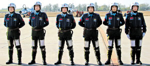 面对笔者的提问,李队长说,由于飞机在一些方面的改进,要使新机达到当前6机编队水平,飞行员需要进行一段时间的恢复性训练。至于表演科目,他表示,因为使用的是超音速飞机,在表演动作上就要受一些限制。比如速度快转弯半径就大,在天气好的情况下,观众能看到精彩表演,天气不好视觉效果就差。另外还有一些动作虽属高难,但观赏性不强。对这些他们将在原有基础上加以改进、有所创新。具体有哪些飞行动作“新鲜出炉”,李队长避而不答。他只表示,观众以后将会看到更精彩的表演。