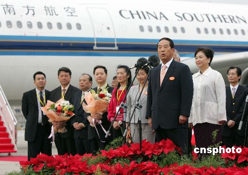 中新社北京五月十日电 题:宋楚瑜机场庄中带谐甩“京片儿”