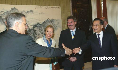 温家宝是在会见欧盟“三驾马车”外长,欧盟轮值主席国卢森堡副首相兼外交与移民问题大臣阿瑟伯恩、欧盟委员会对外关系委员瓦尔德纳和欧盟候任主席国英国外交大臣的代表时作上述表示的。