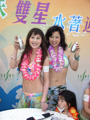 中新网5月12日电 据香港《大公报》报道,江欣燕及唐丽球昨日以瘦身代言人身份,为纤体公司做宣传。二人穿上泳装、由穿上夏威夷草裙的小朋友陪同出场,期间更亲自炮制夏日饮品。昨日天气稍凉,唐丽球不慎着凉感不适,提早离场。