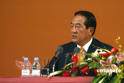 亲民党大陆访问团记者会今天下午在北京饭店举行,数百名大陆、台湾、港澳地区及外国记者聚焦于此。在介绍了和中共中央总书记胡锦涛会谈的情况后,宋楚瑜回答了五位记者的提问。
