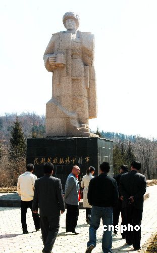 图:杨靖宇雕像吸引参观者