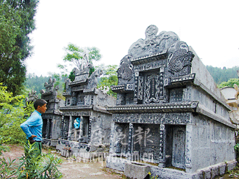 田绪明得意地说,他手下有五个石工,一年四季几乎难得空闲,主要就是忙着替人修建活墓。