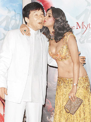 《神话》在影展中播出了大约一分多钟的片段,当中除了千军万马的大场面,金喜善宽衣解带为成龙疗伤的场面也很有看头。成龙在记者会上表示虽然戏中和金喜善有感情戏,但坚拒激吻,唯一的激情戏中,金喜善却笑不停,浪费了很多时间,也让成龙忍不住问:“到底我这个样子有什么好笑!”