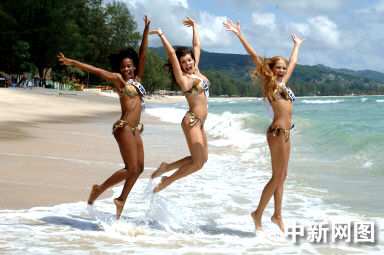 5月19日,2005环球小姐参赛佳丽在泰国普吉岛泳装亮相。