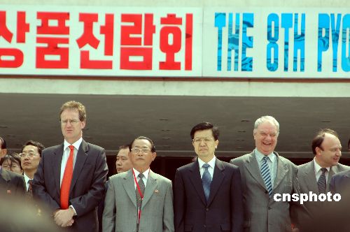 由朝鲜贸易省主办的“第八届平壤国际商品博览会”五月十六日至十九日在朝鲜平壤三大革命展示馆举行,有来自世界各国的三百多家企业参展,这是朝鲜历史上首次举办大规模的国际商务活动。图为博览会开幕式现场。作者:涵乔