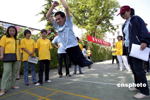 五月二十日,北京华文学院在北京举行运动会,来自十七个国家的二百多名学生以及全体教职工参加了趣味横生的运动会。图为学生们在八十米折返跑的比赛中。作者:盛佳鹏