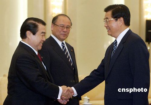 胡锦涛说,中国党和政府高度重视中日关系,真诚希望两国和平共处、世代友好、互利合作、共同发展。他表示,相信只要双方坚持从战略高度和长远角度把握和处理中日关系,严格遵守《中日联合声明》等三个政治文件的原则和精神,坚持以史为鉴、面向未来,正确处理好历史问题和台湾问题,通过对话和协商,妥善解决彼此间的分歧,扩大两国在各领域的互利合作,不断巩固和加强两国关系的政治基础、经济基础和社会基础,中日关系就能长期健康稳定地向前发展。