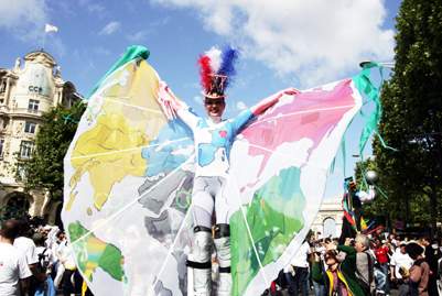一身黑装的吕克·贝松手拿话筒,走在世界上最美丽的大道上,向100来名身穿写有“巴黎申办2012年奥运会”字样白色T恤衫的年轻人表示,“感谢你们来参加这个小小的节日”。这些年轻人从星形广场载歌载舞地行进至乔治五世地铁站路段。香榭丽舍大道整个上午禁止车辆通行。