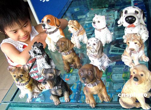 5月23日,一个小朋友在重庆市荣昌县某旅游产品商店选购树脂材料制作的小动物玩具。“六一”到来前,树脂“宠物”由于造型各异、体态轻巧且色泽分明,受到小朋友们的喜爱。作者:朱芸锋