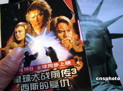 2005年5月23日,一位上海影迷拿着《星球大战前传3》的电影票。这是个注定属于卢卡斯和其星战帝国的日子。美国当地时间5月19日,《星球大战前传3》上映首日票房破5000万美元,世界电影史上的单日票房纪录就这样被刷新,同时令去年6月《蜘蛛侠2》创造的4040万美元的单片首日票房纪录作古。《星战前传3》以数字向世人诠释了一部好莱坞真正巨片的商业价值。作者:绍常