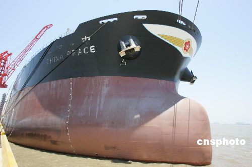 在上海外高桥船厂,尽管在建巨轮的身影比比皆是,但一提“中华和平”四个字,这里的工人们都十分熟悉并能马上指出巨轮停泊处。他们告诉记者,外高桥船厂以往建造的新船,工人们都习惯性以船型称呼,但“中华和平”的名字最令人印象深刻,所以工人们无人不知。据悉,“中华和平”号是上海外高桥船厂建造的第十八艘船,船东为台湾航运界的翘楚——中国航运股份有限公司董事长彭荫刚。尽管之前已有这么多的“兄长”,但这艘船的诞生却因多了一份海峡两岸的亲情而格外受人关注。