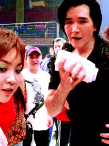 演出完毕,费翔依然拒绝采访。有媒体记者高声问:“费翔,你坚决不接受采访,是不是受胸毛事件的影响?”费翔听到后顿时僵住笑容,激动地把两只手张开,拼命地做出向下压的动作,头不住地点着,眼中开始闪烁泪光。随后,被保护着的他在闪光灯中拂袖而去。(记者张晓禾)