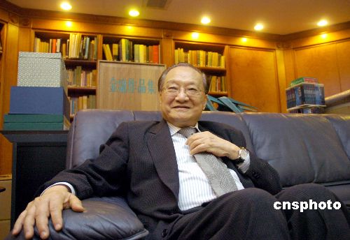 香港著名作家查良镛在其创作武侠小说五十周年之际,接受中新社记者专访,金庸说“书”论“剑”谈笑风生。作者:洪少葵