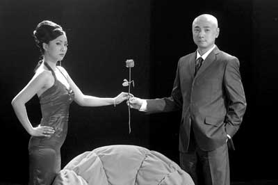 5月30日下午,记者走进煤矿文工团的安源小剧场,只见陶虹身穿一件紫红色的露肩晚礼服,徐峥则穿着一身笔挺的西服。他们两人分别站在一个红色布艺沙发的两侧,头顶上是大量的聚光灯。剧场里的阵势和时尚节目的拍摄别无二致。可是,陶虹、徐峥却是在为他们二人主演的戏剧《最后一个情圣》拍摄电视宣传片。
