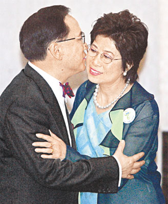 当曾荫权走下讲台时,立刻与迎上前去的太太鲍笑薇拥抱。此时,他的竞选助手们正向媒体散发内涵含讲词和政纲的彩色讲义册,开启处被设计成上方有一蓝色煲呔的淡绿西装样式。而册子的背后,则是曾太写有施政理念“强政励治,缔造和谐,福为民开”的十二字书法,抬首处是一枚篆刻小章“自强不息”。(完)