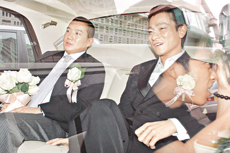 中新网6月8日电 据香港媒体报道,杜汶泽与田蕊妮昨日结束爱情长跑注册结婚,刘德华现身,帮杜汶泽过关娶老婆。在宣誓一刻,新娘子田蕊妮感动得泣不成声,在过百位宾客见证下,步入人生另一阶段,整个婚礼耗资近百万元!
