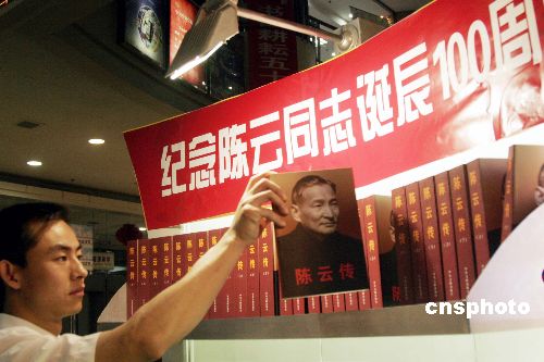 6月7日,一位读者在北京王府井新华书店一书架前,翻看新上市的《陈云传》。为纪念陈云同志诞辰100周年,经中共中央批准,由中共中央文献研究室编写,金冲及、陈群任主编,曹应旺任副主编的《陈云传》,已由中央文献出版社出版,并在全国各地新华书店发行。作者:陈晓根