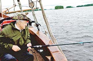 第二天,叶利钦夫妇坐直升机来到瓦尔祖古河边钓鱼。这里鱼比较多,也很肥,叶利钦钓到的一条大鱼重3公斤,兴奋的前总统差点跳起舞来,搂住夫人吻了起来。不久,叶利钦感到了疲惫,在岸边生起篝火,休息一会儿,与渔民们聊天。妻子奈娜拿起钓竿,到河边又钓了几条鱼,让前总统羡慕不已。(固山)