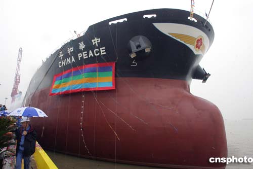 “中华和平”号是台湾船东直接在祖国大陆订造的第一艘船。十年前,因海峡两岸无法实现直接的经贸往来,台湾远东仓储公司曾通过日本三菱商社,间接地向江南造船厂订造了一艘七万吨级巴拿马型散货船“远涵”号。二00三年六月,在上海外高桥造船公司成功交付第一艘出口船即香港泰昌祥航运公司订造的十七点五万吨好望角型散货船“祥瑞”号之际,“中国航运股份有限公司”于四日内连续向该船厂订造了两艘同型船,今天命名交付的“中华和平”号便是其首制船,揭开了海峡两岸航运业和造船业在新世纪共同发展、繁荣的崭新一页。