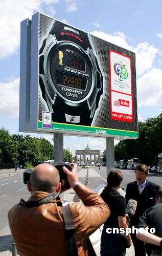 6月9日,在德国柏林街头,2006世界杯倒计时牌与勃兰登堡门遥相呼应,德国世界杯前一年倒计时活动已经正式拉开帷幕。作者:Ic/cnsphoto