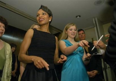 中新网6月11日电 据美联社报道,很久之前拥有“钢琴师”身份的美国国务卿赖斯,10日鲜见地登上了华盛顿肯尼迪中心的舞台,为一名身患重病的年轻女高音演员伴奏。