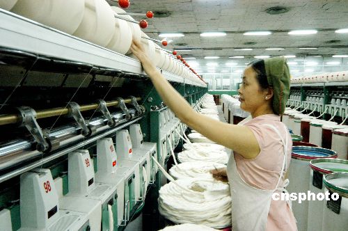 中国商务部日前宣布:中欧双方同意,在2005年6月11日至2007年底期间内,对中国的棉布、T恤衫、套头衫、裤子、女式衬衫、床单、女连衣裙、胸衣、桌布、亚麻纱等十类纺织品合理确定基数,并按照每年8%至12.5%的增长率确定中方对欧出口数量。作者:泰峰