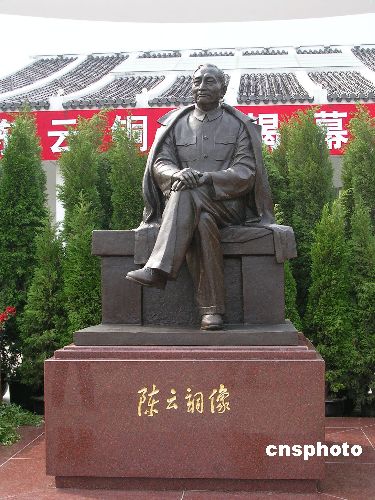 六月十三日是陈云诞辰一百周年纪念日,“陈云同志诞辰100周年纪念大会”在北京隆重举行,胡锦涛发表重要讲话。陈云被誉为伟大的无产阶级革命家、政治家,杰出的马克思主义者,中国社会主义经济建设的开创者和奠基人之一,中共和国家久经考验的卓越领导人。图为位于上海市青浦区练塘镇陈云故居前的陈云铜像,江泽民题写了“陈云铜像”。作者:张明新