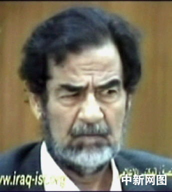 6月13日公布的伊拉克前总统萨达姆在一不明地点接受质询的电视照片。伊拉克特别法庭表示,一名法官已向萨达姆提出质询,调查一什叶派穆斯林聚居的村庄里数十名男子被杀害事件。1982年,萨达姆曾在该村逃过一次暗杀。