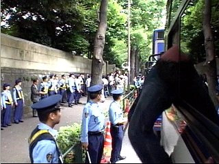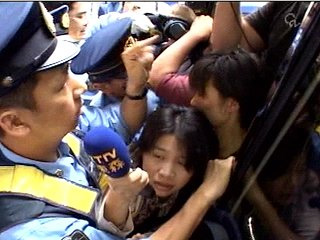 为了采访,有的台湾记者拼了老命要冲出防锁线,日本警察却是荷枪实弹,阻挡台湾媒体,还把记者软禁在游览车内,这样的奇景就连日本媒体也闻讯前来拍摄。