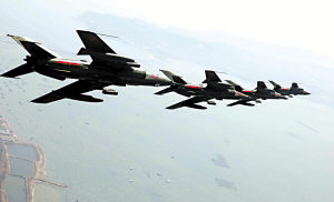 报道描述,多个机场的一批批新战机紧急升空,向指定空域机动出击;多支机动雷达部队在预定地域快速集结,导弹、高炮紧急机动变更部署,迅速构建蓝天火网;保障分队采用空运、空降、空投等多种方式,为参演部队实施精确保障;负责海上搜救任务的海军部队及时奔赴空战海域,担负营救任务……整个训练过程,情况随时导调,对抗逼真,火药味浓。