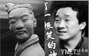 中新网6月16日电 据北京科技报报道,最近一家杂志在制作陕西兵马俑专辑的时候,偶然发现一个有趣的现象:雕刻于两千年前的兵马俑的“长相”,居然和今天的许多人惊人的相似。据该杂志人士说,“我们开始只想拍一些和秦俑脸相像的现代人的脸,因此我们拍摄了大量秦俑的头像和陕西人的脸,后来我们发现,我们编辑部中很多人都很像这些秦俑头像,甚至只要你眼力够好,你就可以从中找寻到一些明星的脸,让人惊叹秦俑雕刻的生动和精湛。”