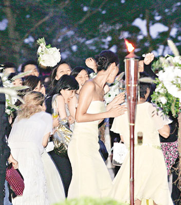 中新网6月20日电 据香港媒体报道,梁咏琪(Gigi)经纪人Stephanie前晚于浅水湾酒店举行婚宴,除了伴娘Gigi、姊妹团杨采妮、莫文蔚、蒋怡外,导演马楚成、吴彦祖、何超仪、陈子聪、杨峥、章小蕙等均有出席祝贺一对新人。仪式上更有拋花球环节,分别由一位圈外人及蒋怡男友翁狄森接到,反观Gigi及姊妹团则怕丑地作鸟兽散,莫非Gigi得悉男友郑伊健日前对记者讲过暂无结婚打算,不想接获花球后被人追问婚期,因而令男友难做?