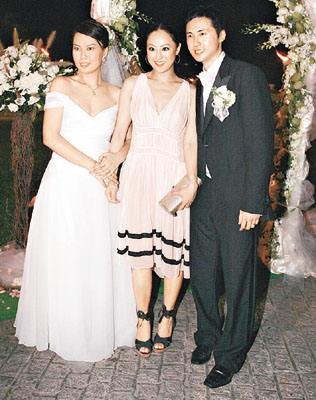 新娘子Stephanie平日为旗下艺人做惯幕后军师,前晚轮到她当主角,她喜孜孜地说:“婚宴请了二百五十人,摆了二十五桌,Gigi送手镯、莫文蔚送耳环、蒋怡送饰物、杨采妮送的好有心思,但我不会讲是什么。最开心天心都由台湾来香港,杨采妮更陪我挑选结婚戒指,Gigi寻晚陪着我整晚,帮我想问题考新郎。抛花球时我想另外一个圈外人接到,又想天心接到,因为她同男友一齐来。”