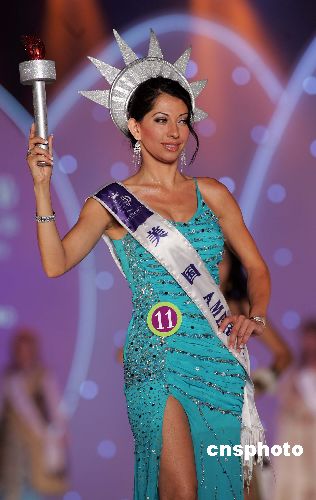美国小姐扮作自由女神参加国际旅游小姐最佳民族服装奖比赛