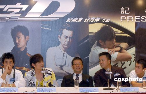 港产电影《头文字D》一众主要演员及两位导演6月20日在香港出席该片记者会,众演员分别畅谈拍摄该片的极速飞车飘移感受,津津乐道。作者:邓庆乐