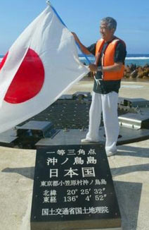 日本东京都知事石原慎太郎曾于5月20日抵达冲之鸟礁石进行“视察”,并声称该礁石是“岛屿”。