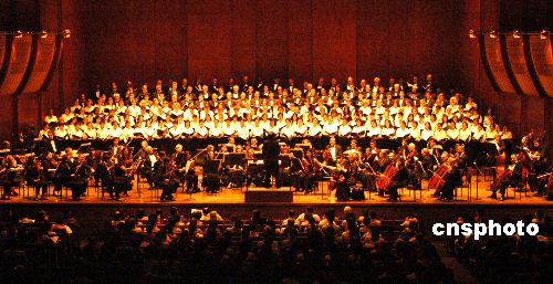 中美艺术家于当地时间六月十九日在美国纽约林肯中心共同举办交响音乐会,纪念中国人民抗日战争暨世界反法西斯战争胜利六十周年。作者:龚文谟