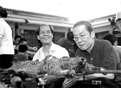 刚刚从延安回来的陈忠实,带着话剧版导演林兆华、主演濮存昕在白鹿原上转悠了一天,据说收获不小。晚上,当地村民组织了对北京人艺一行的欢迎活动。四方小凳、铁皮桌、山野菜、架子上散发着香味的烤全羊,浓浓的乡土气息让一路走来的濮存昕有些激动。濮存昕很绅士,非要等到对面的陈忠实、林兆华落座后才缓缓坐下。