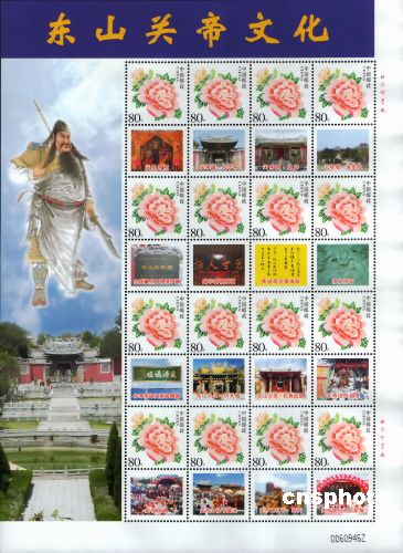 经国家邮政局批准,福建省东山县邮政局6月下旬发行《东山关帝文化》个性化邮票一套,主票为面值80分的《花开富贵》,附票票面均为海峡两岸关帝文化的摄影作品。东山岛上的全国重点文物保护单位——铜陵关帝庙,建于明洪武二十年(公元1387年),是台湾470多座关帝庙的香缘祖庙。作者:林长华