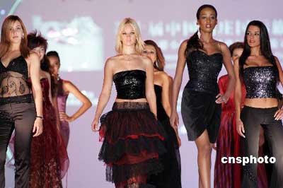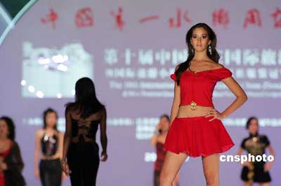 6月22日晚,参加2005年国际旅游小姐大赛的佳丽们在中国江南古镇周庄的T型台上演绎一场名为“东情西韵”的时装秀,为第十届中国周庄国际旅游节画上圆满句号。作者:毛建军