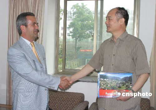 6月23日,国务院侨办副主任赵阳会见瑞士提起诺州美利德市“微缩瑞士”公园园长Dominique Vuigner先生。中国深圳著名的“锦绣中华”公园与已有五十年历史的瑞士提州“微缩瑞士”,通过国侨办介绍结成友好园区,将开展中瑞微缩景区建设、工艺、管理及旅游方面的交流与合作。作者:田地