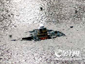 在现场,记者找到了目击该枚不明身份炮弹落下全过程的陈姓市民,据他介绍,事发时,正下着大雨,突然,一道闪电一样的光亮从天直降道路中央,随后发出巨大的声响,降落点向上喷出约7米高的火焰。(史大伟)